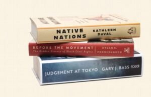 Gary J. Bass, the William P Bowell Professor of World Politics of Peace and War at Princeton (Judgement at Tokyo: World War II on Trial and the Making of Modern Asia); Kathleen DuVal, Professor of Early American History at the University of North Carolina (Native Nations: A Millennium in North America); and Dylan C. Penningroth, Professor of Law and History at the University of California, Berkeley (Before the Movement: The Hidden History of Black Civil Rights) will each receive US$10,000 as finalists and are now in the running for the US$75,000 prize.Challenging dominant narratives, these ground-breaking writers provide new ways of seeing and understanding both our history and the present day.